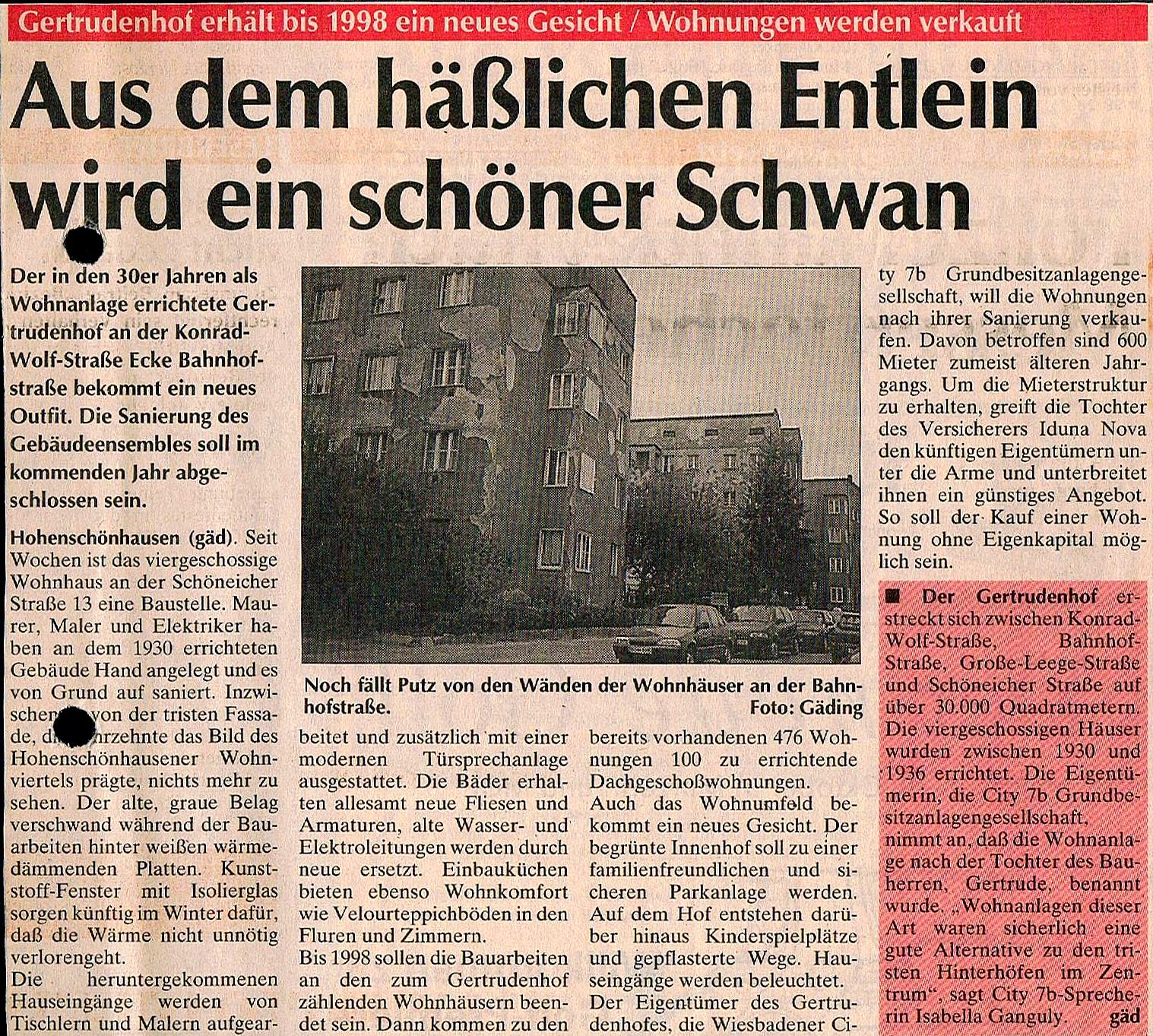 Zeitungsartikel von 1997 - Auf dem Foto ist vorne die Bahnhofstraße 3F (Hofseite) zu sehen.