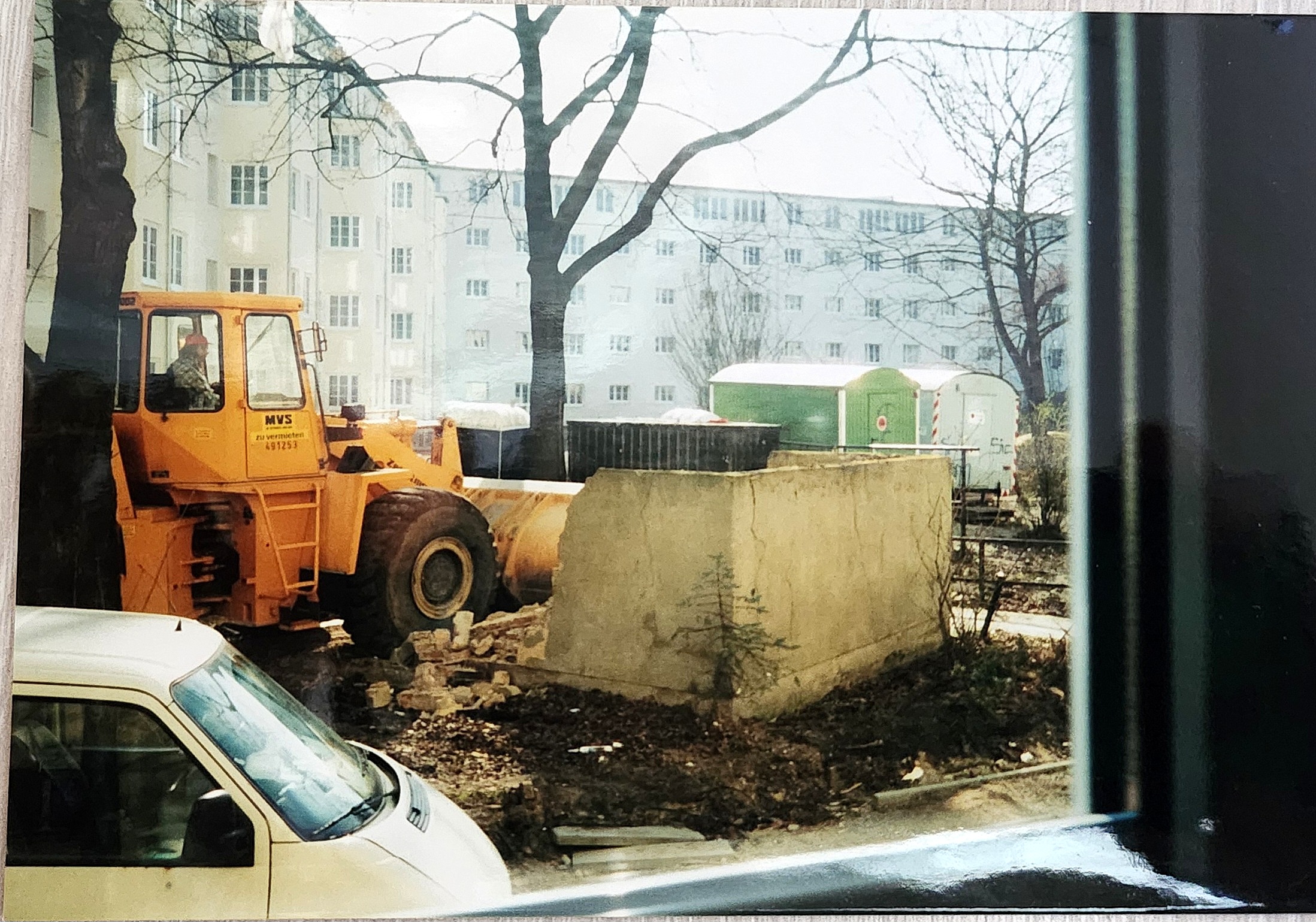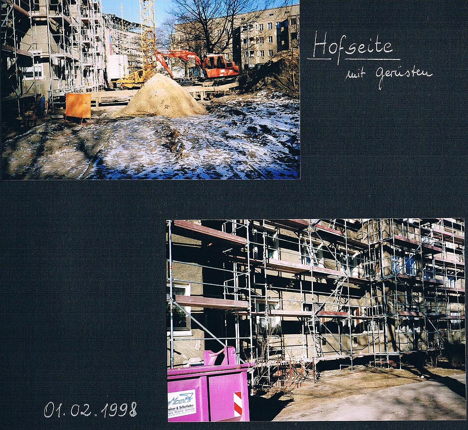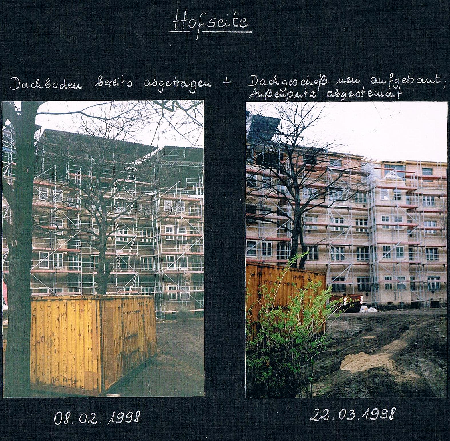 Das alte Müllhaus im Innenhof wird beseitigt. Dahinter ist noch die Teppichklopfstange zu sehen.