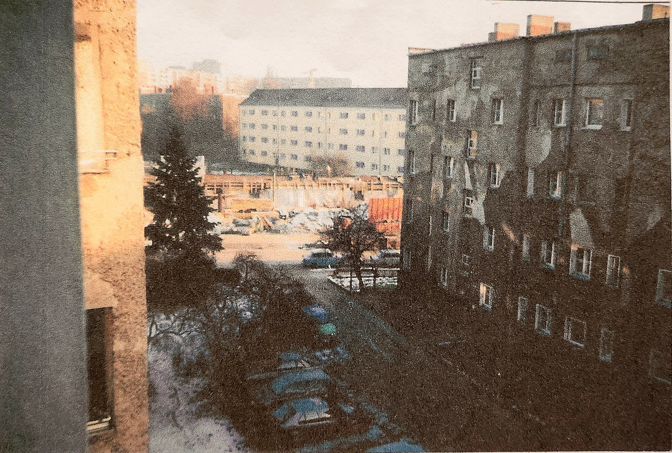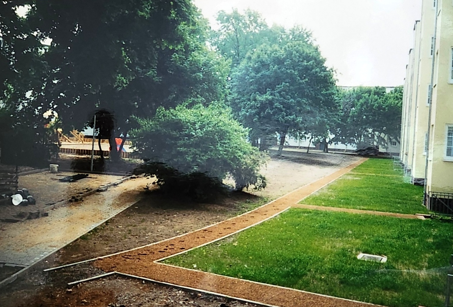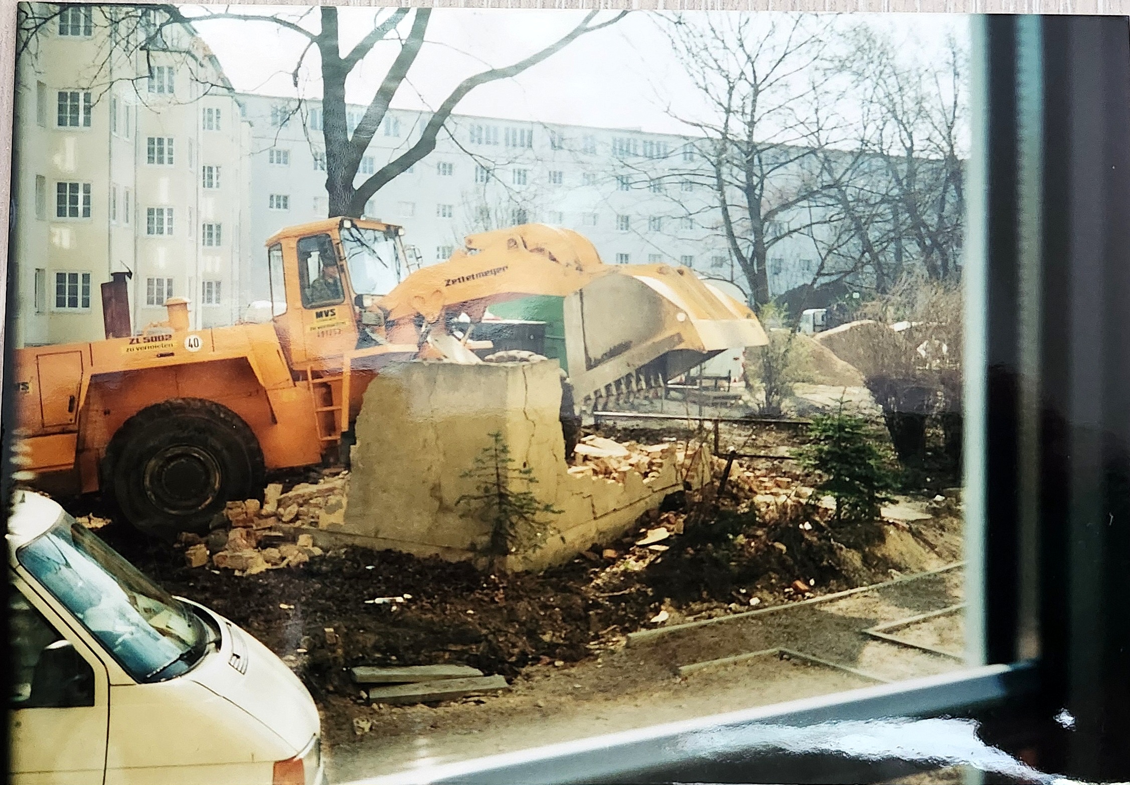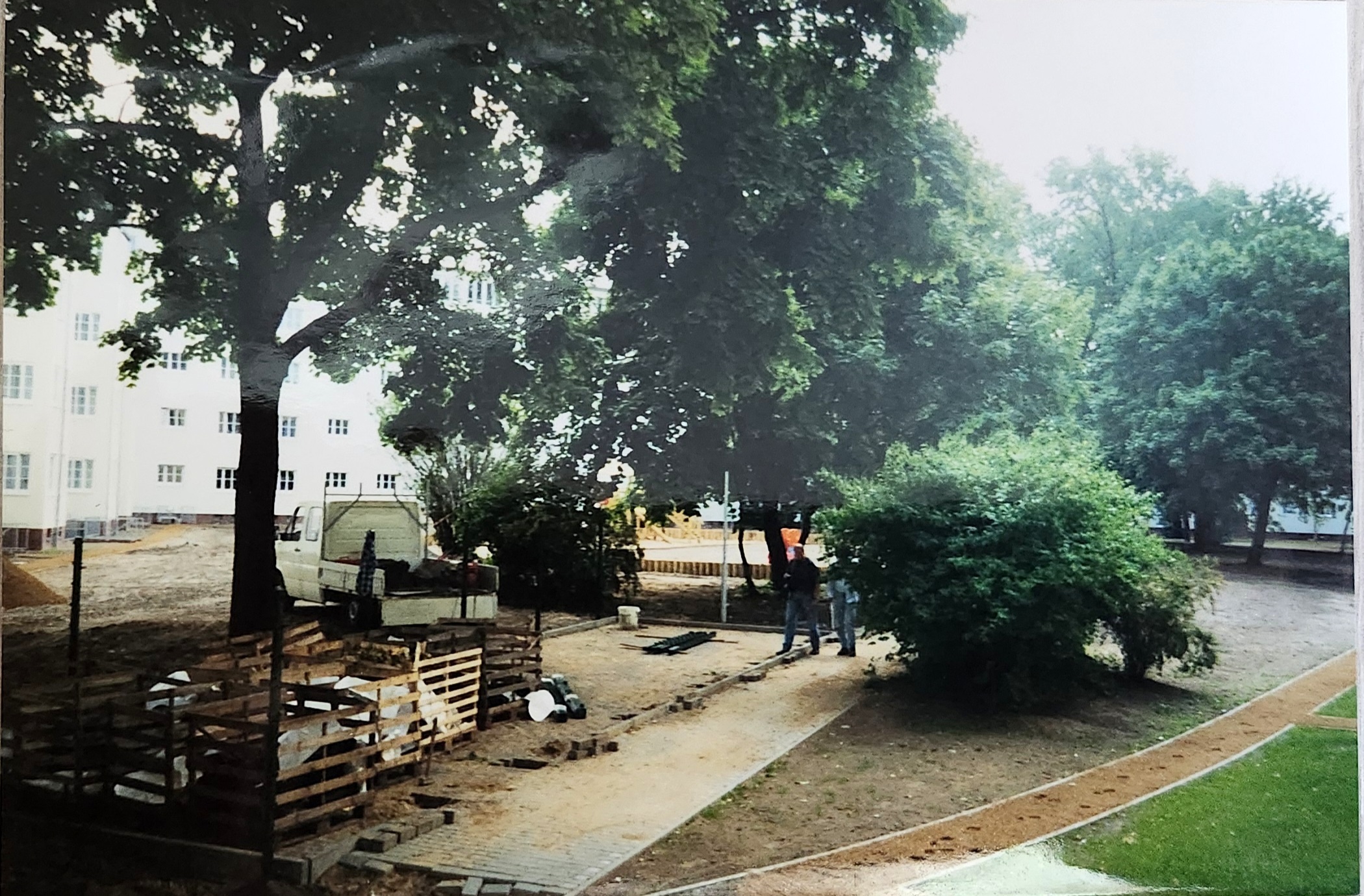 Das alte Müllhaus im Innenhof wird beseitigt. Dahinter ist noch die Teppichklopfstange zu sehen.